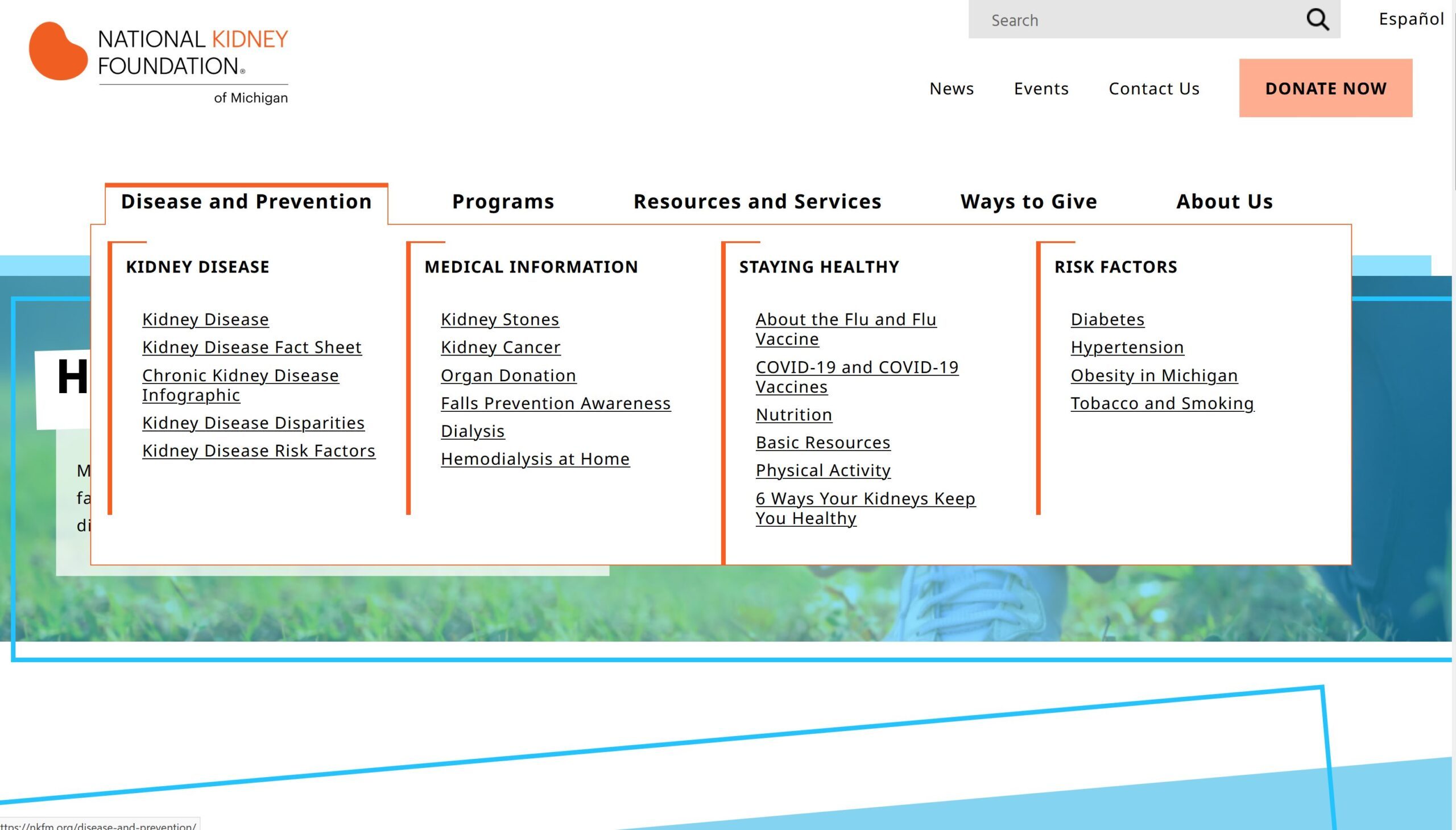 The NKFM wanted to create a better experience for people to learn more about kidney disease and for people to donate to the organization. While all the information was already available on the website, the NKFM worried that users had trouble finding the necessary information.